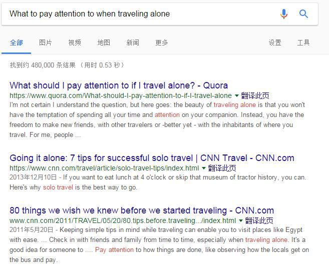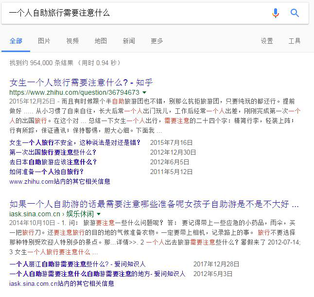 以“一个人旅行需要注意什么”为例: