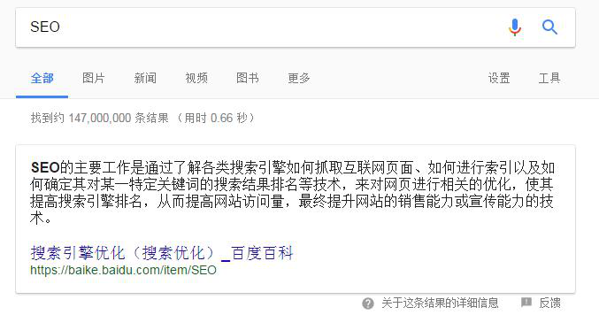 Featured Snippets(精选摘要),试着在谷歌搜索下“如何……”“……怎么办”“……是什么”这类问句形式的关键字,你会发现Google搜索引擎会在搜索结果的最上方,给你个“直接的答案”: