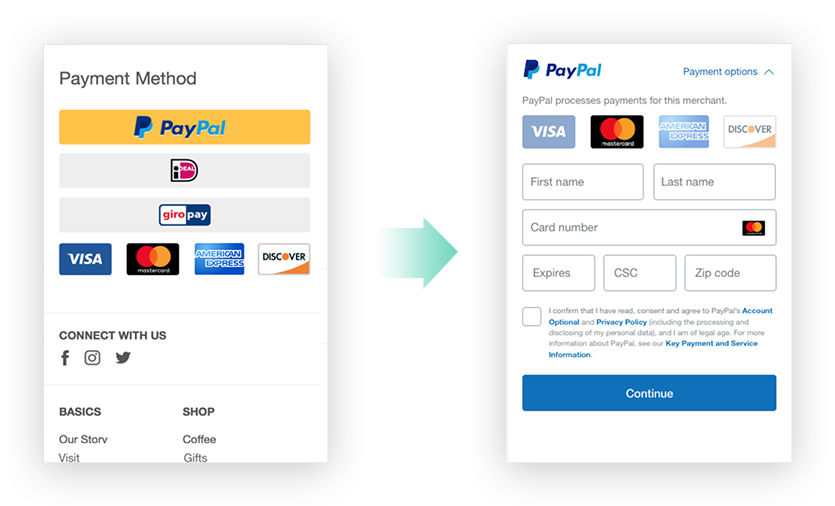 支持PayPal快捷支付功能