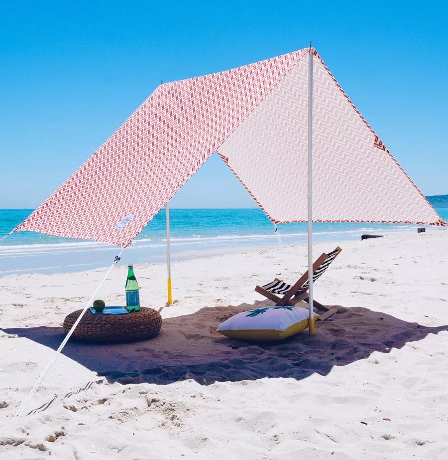 单凭颜值,这顶遮阳帐篷已经称得上是呆板沙滩伞的完美替代。看起来单薄的它,绝非徒有其表:材质能够过滤高达97%的有害 UV 辐射,A 字形设计同时提供了伞底舒适的气流。一人组装,全家享受,你值得备货。