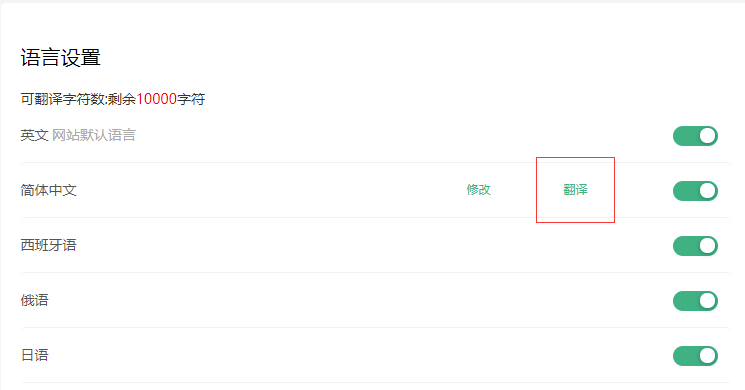 2.增加批量翻译功能,在【语言设置】-【语言版位置】开启后,会出现翻译按钮,点击进行批量翻译;