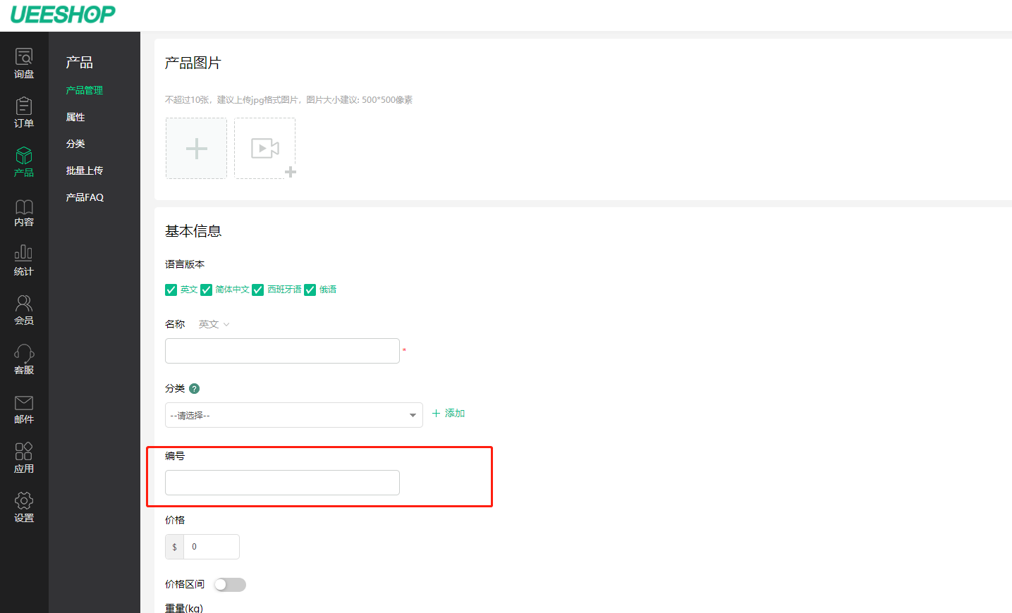 6.批量上传增加规格属性上传,且由原来根据id改成根据产品编号批量上传;