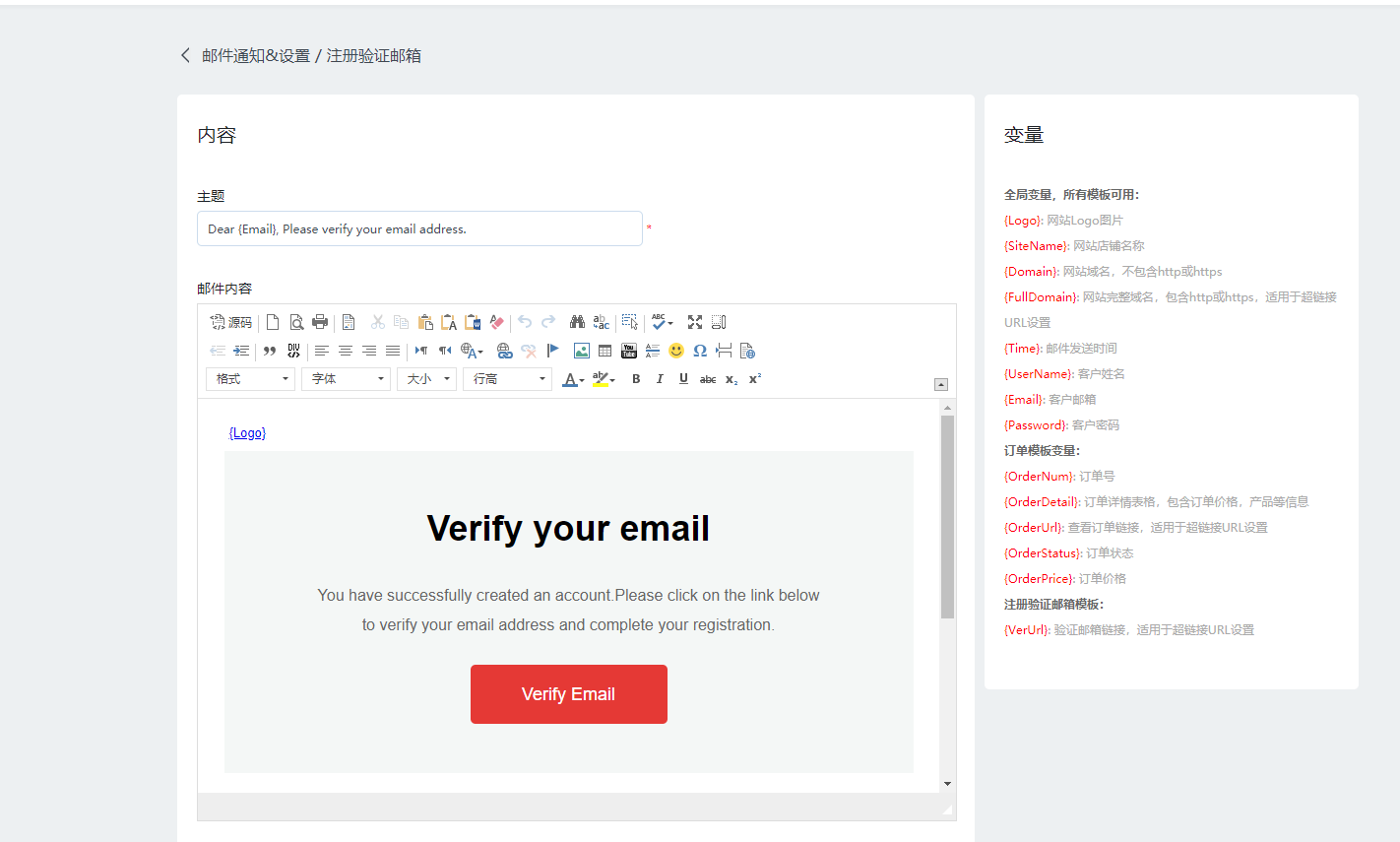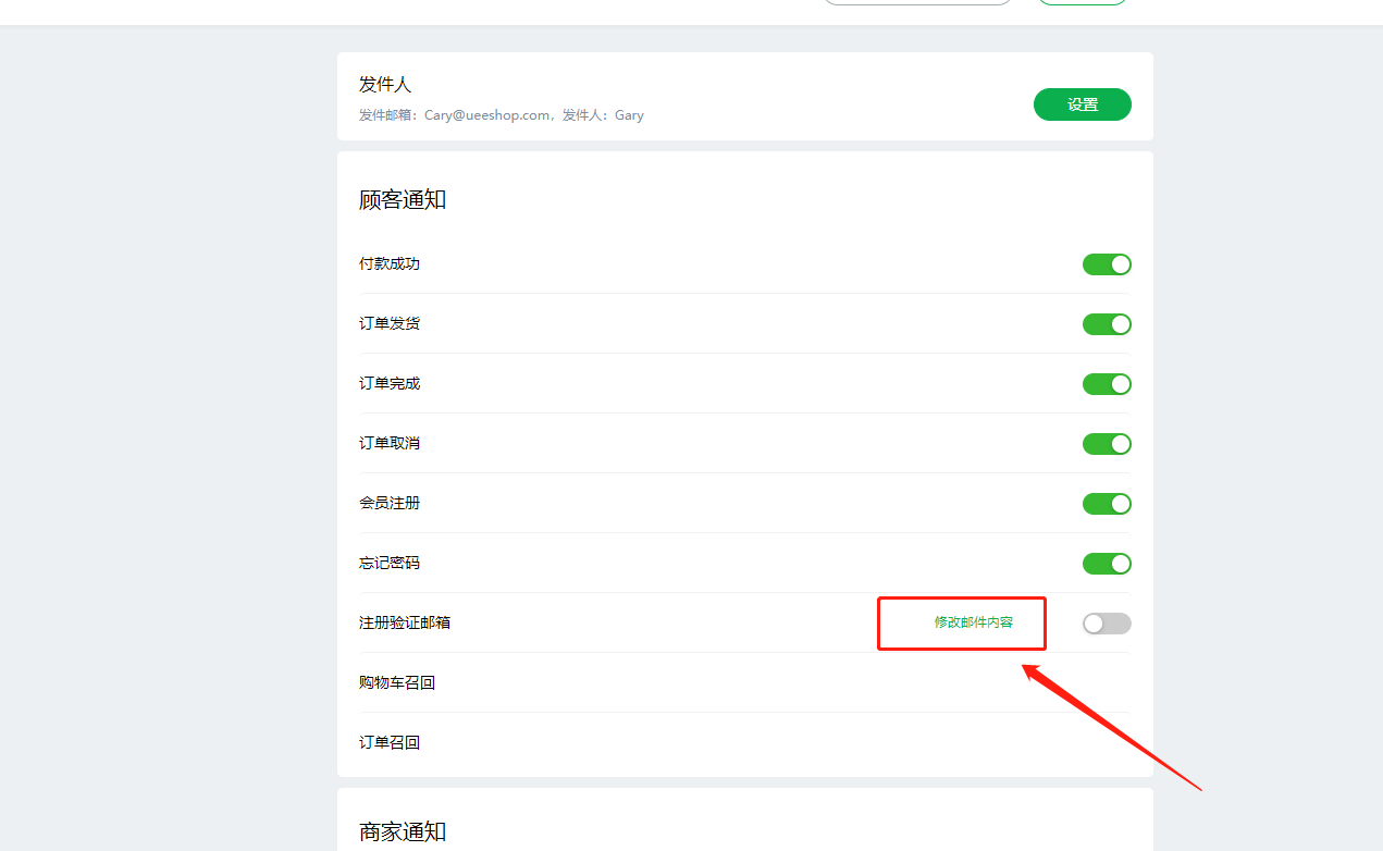 1.后台邮件通知设置,注册验证邮箱,鼠标移动到列上,增加“修改邮件内容”功能,支持修改邮件内容