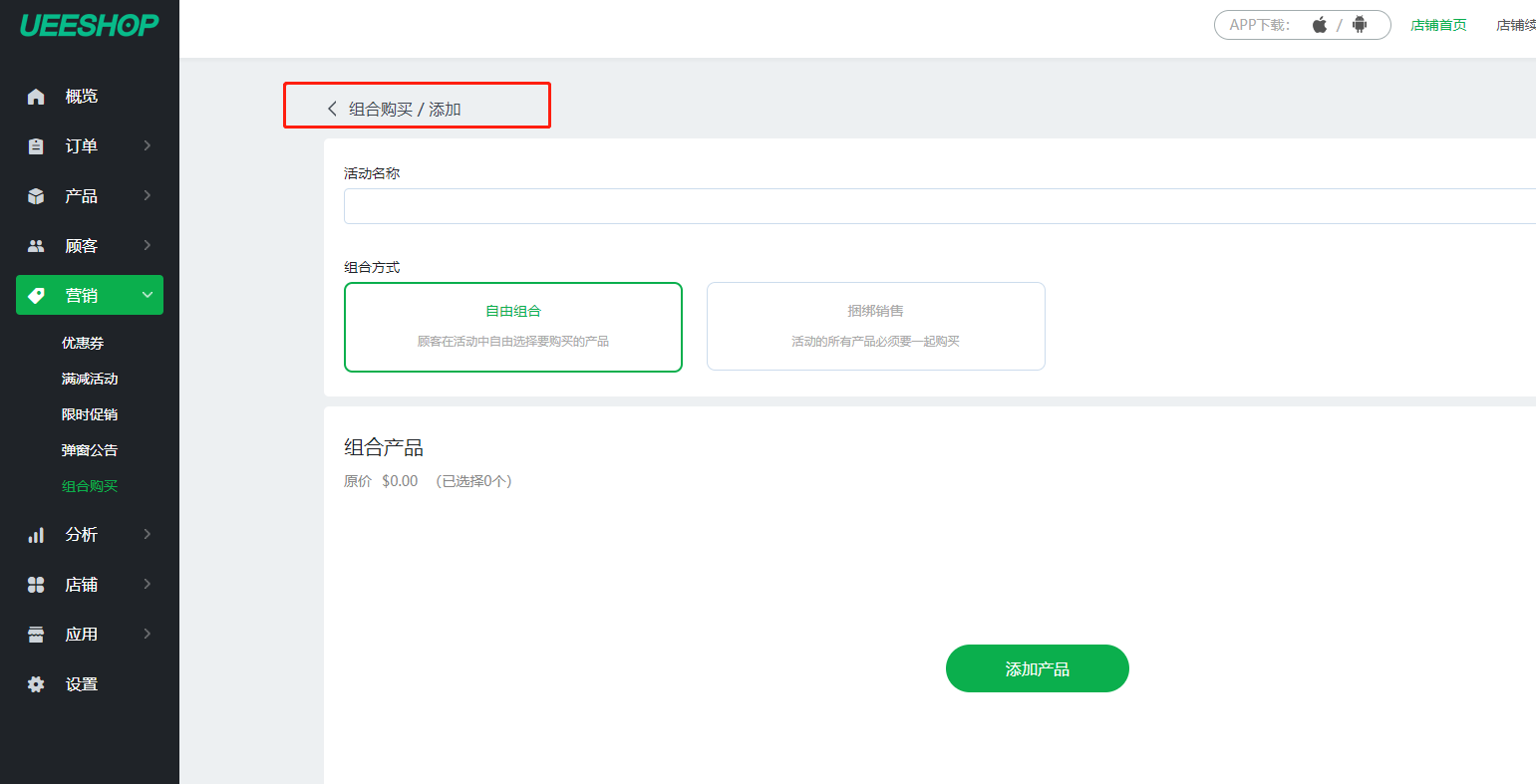 1.优化后台组合购买、 域名绑定、设置、物流、店铺语言导航