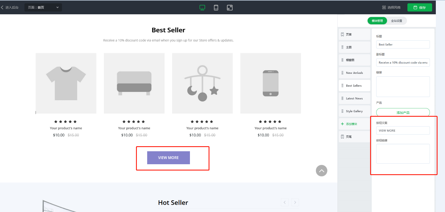 1.店铺装修,首页增加自定义按钮是否显示