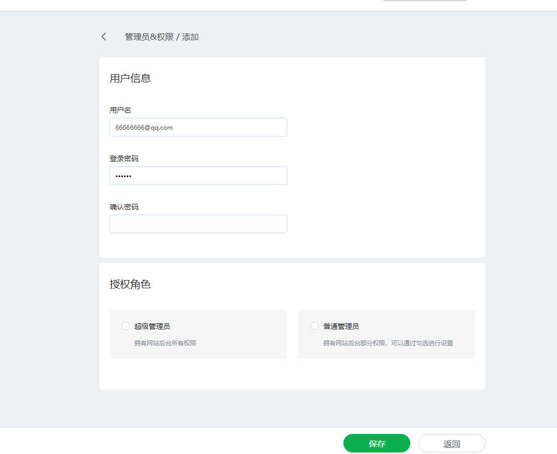 1.更新管理员列表、权限的UI以及功能布局