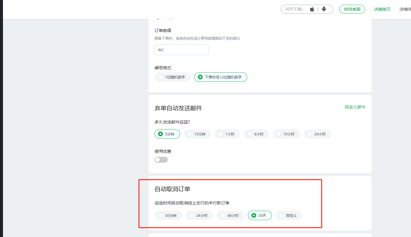 1.后台购物设置,增加自动取消订单功能,支持自定义时间取消未支付订单