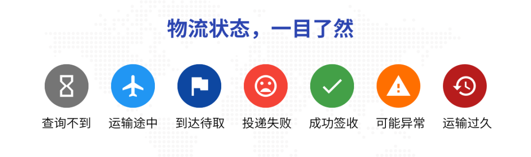 提供清晰标准的轨迹状态节点,包裹最多可展示7种物流状态;