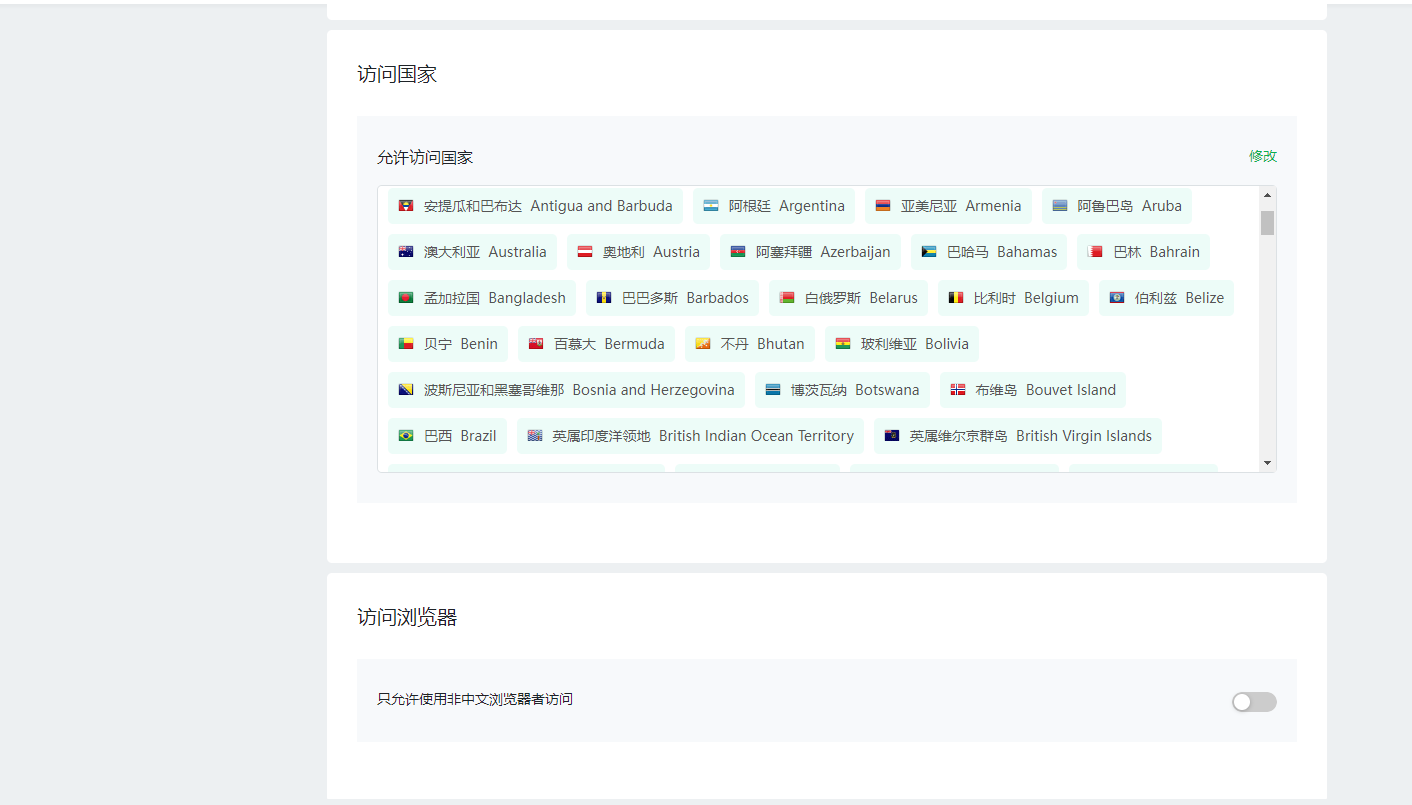 2.访问国家,默认全部国家可以访问,支持用户勾选那些国家,表示可以访问网站