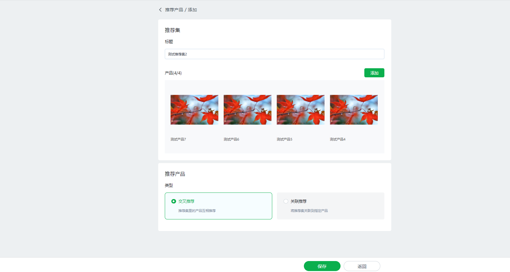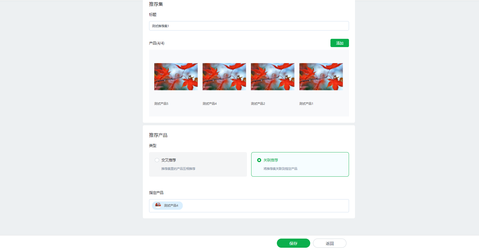 2.推荐集支持两种推荐类型(交叉推荐、关联推荐),设置后前端产品详细页面增加一个独立的推荐集模块