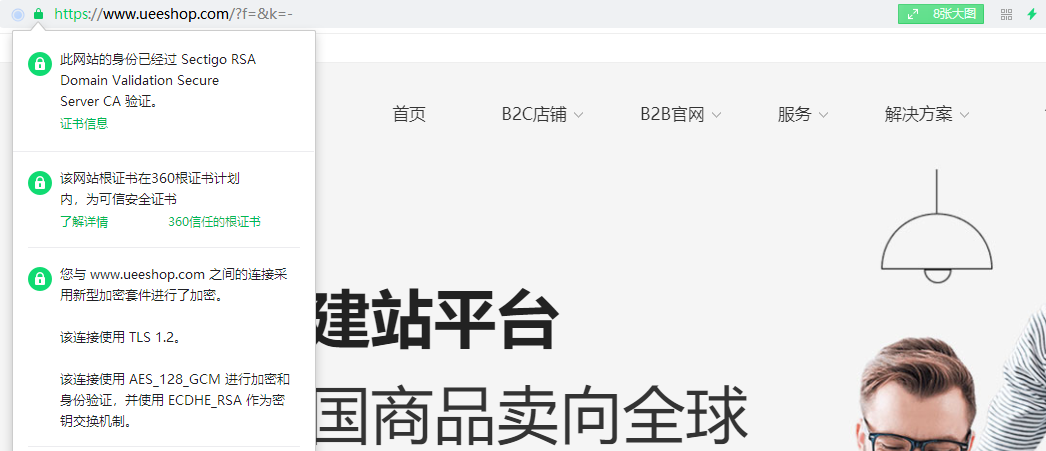 SSL证书的价格从免费到上万都有,Ueeshop的网站出厂自带SSL证书,不需要手动安装,免费供用户使用。Ueeshop为用户提供高安全系数的网站,在保护用户数据安全的同时,也提升访客对网站的信任感。
